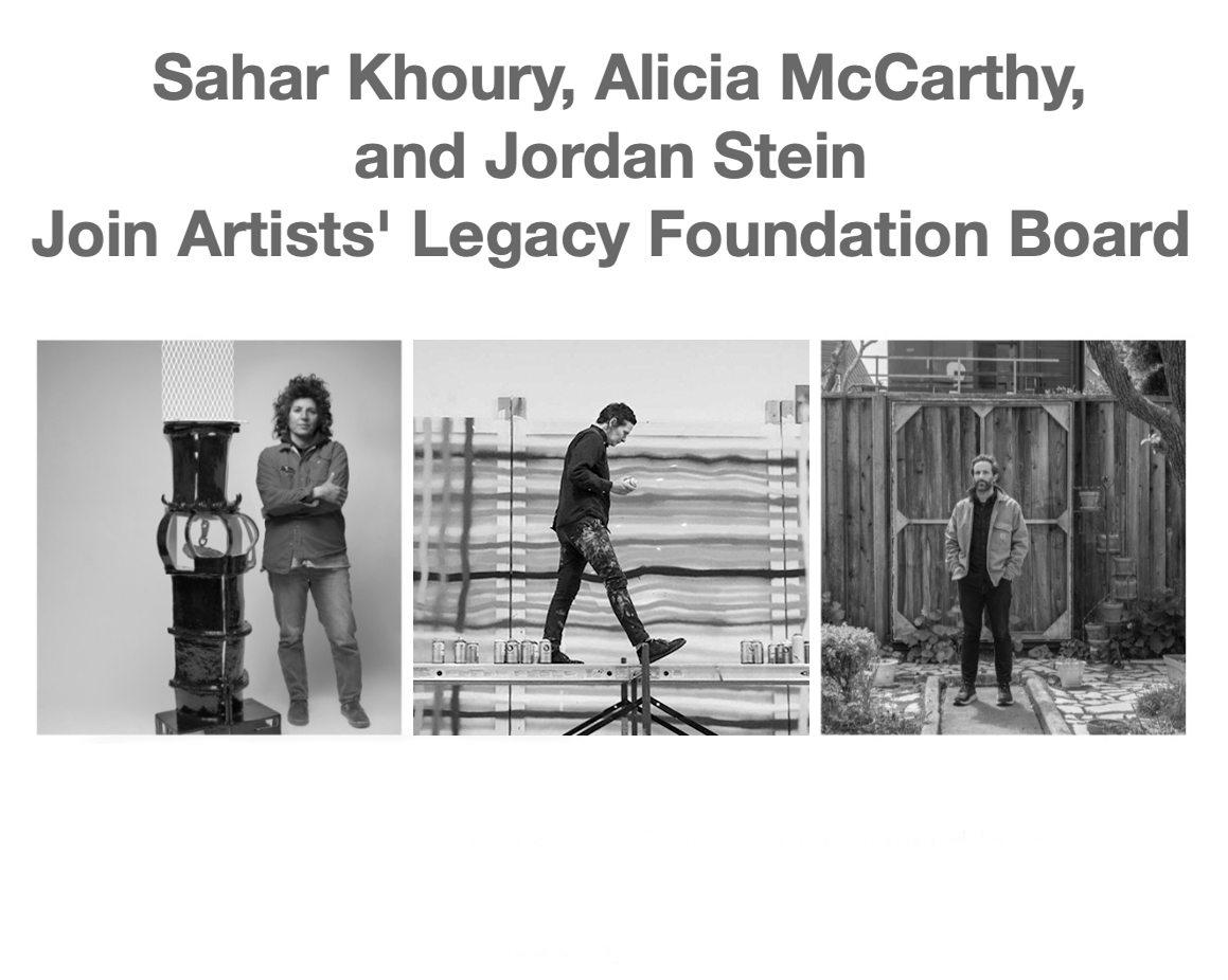 Artists’ Legacy Foundation is pleased to welcome new board members Sahar Khoury, Alicia McCarthy, and Jordan Stein (April 10, 2026)